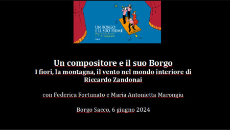 Vissuto altrove per gran parte della vita, Riccardo Zandonai ha sempre coltivato le sue radici trentine: i suoni dell'ambiente, le prime esperienze musicali nella banda e in chiesa, gli amici di Sacco ritornano nelle pagine in cui il compositore parla di sé. In forme diverse molti aspetti del mondo locale entrano nelle opere che poi gireranno il mondo: le sigaraie in Conchita, il clima domestico e il mondo d'artigiani nel Grillo del Focolare, i fiori in Melenis e Francesca da Rimini, gli asini della Farsa amorosa... E le montagne che ispirano le grandi pagine sinfoniche.