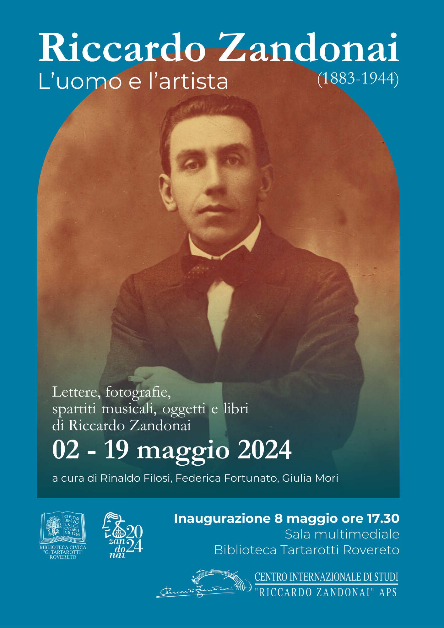 Lettere, fotografie, spartiti musicali, oggetti e libri: in vetrina documenti di ogni natura accompagnano il racconto del percorso biografico e creativo di Riccardo Zandonai, mettendo in rilievo le relazioni personali e artistiche e associando il pensiero dell'artista (attraverso gli scritti epistolari e autobiografici) alle diverse tappe della sua opera.